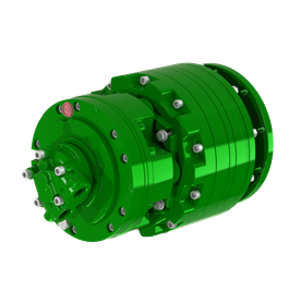 Gruppi con uscita albero, con optional freno statico. Una soluzione compatta ad alta coppia motrice, in grado di sostenere carichi radiali. L’efficienza del motore SAI, abbinata ad un riduttore a singolo stadio, offre massima coppia di spunto ed elevata precisione nel controllo della rotazione. L’applicazione di motori a cilindrata doppia, offre un’estensione del range prestazionale fino a velocità molto alte. La variazione di cilindrata può arrivare, su richiesta, a 0 cc/rev.