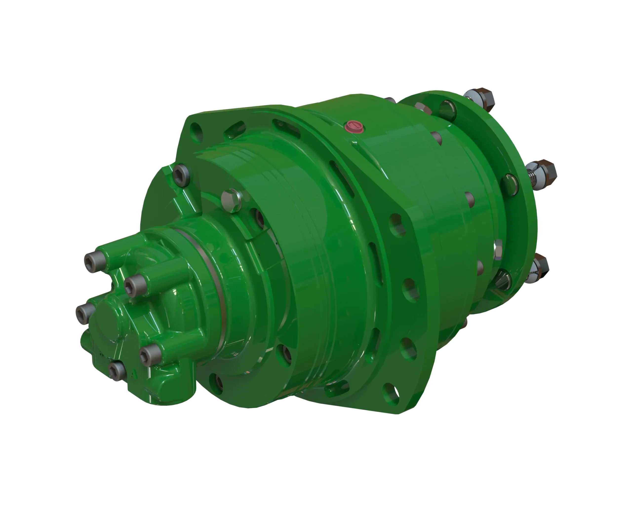 Double displacement motor with integrated planetary gearbox with 7:1 or 5:1 reduction ratio, also available with negative disc brake version (BVFK3). The BVK series is also available with different hub types (31A, 31B, 31D).